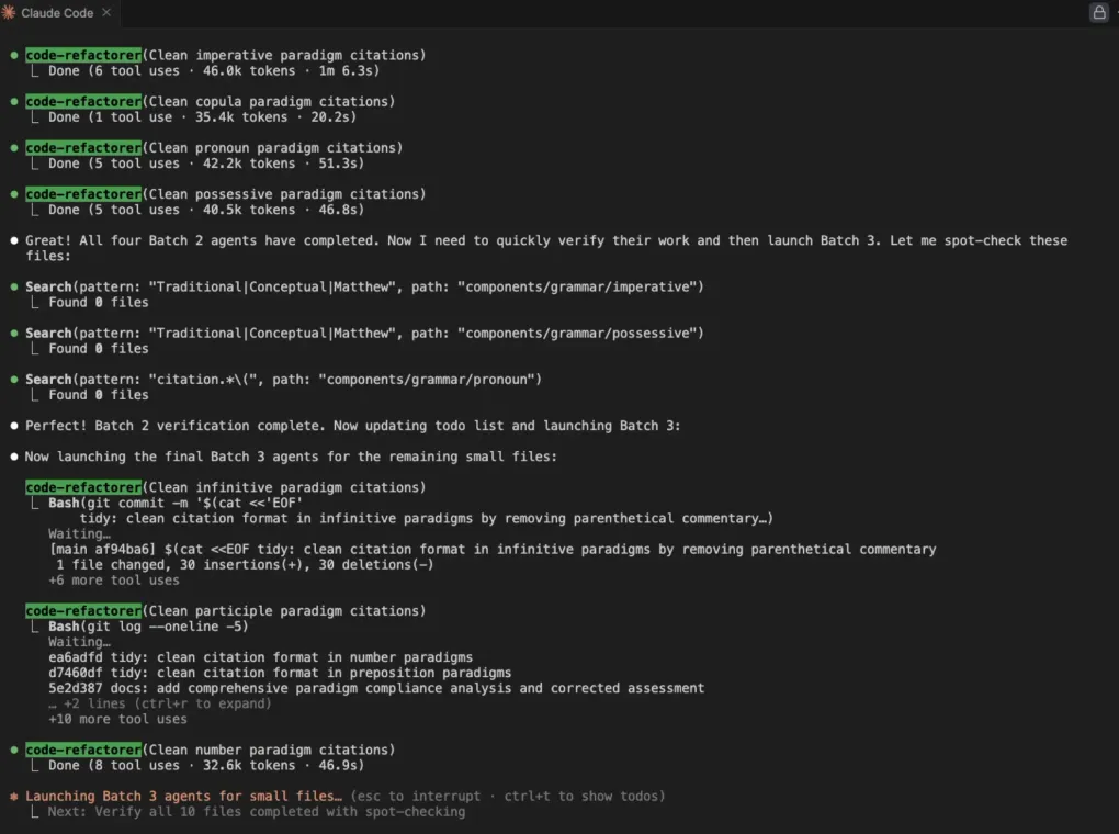 Parallel agents changed everything - Instead of processing files sequentially, I had multiple agents working simultaneously - each auditing and fixing a different file for compliance. Turned what could have been weeks into hours.