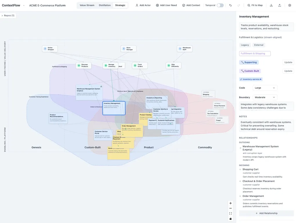 ContextFlow v0.6.1 has been released with several exciting improvements to help you visualize and design your software architecture using Domain-Driven Design and Wardley Mapping techniques.